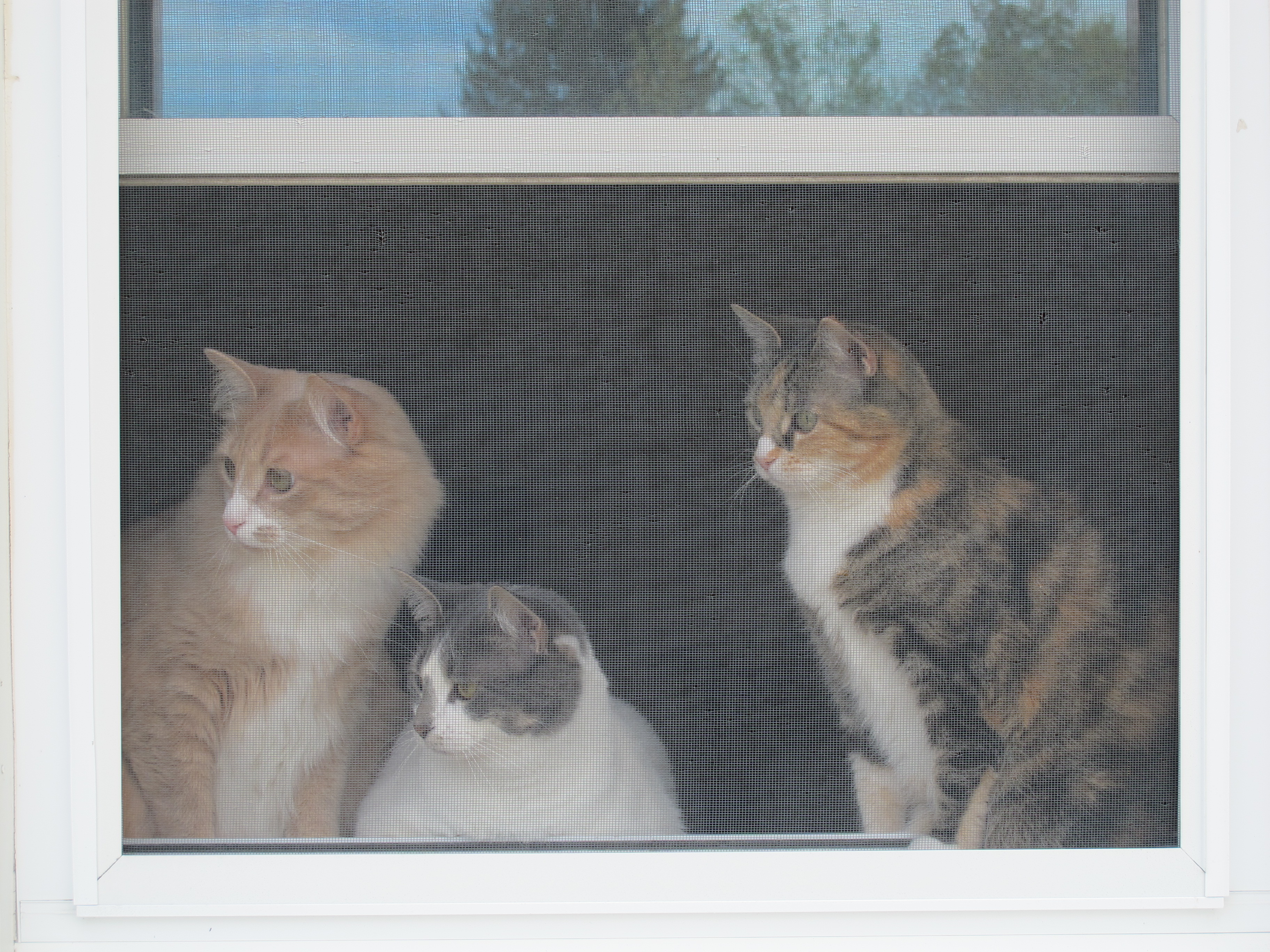 The cats peer out the window, wordlessly inquiring where I am going so early.