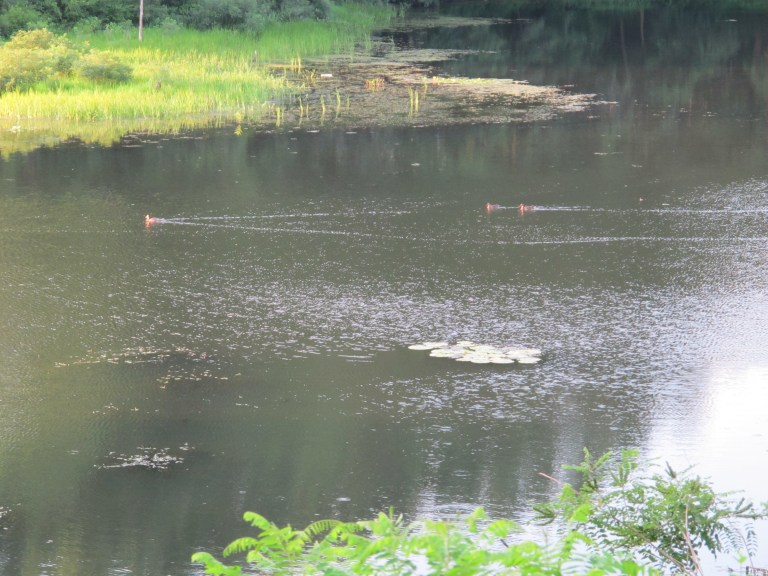 Along the Manhan Rail Trail I go, pausing here and there to admire ducks lazily swimming on the pond or the reflection of one of the mill buildings on the water. A blue wildflower catches my eye, as well.