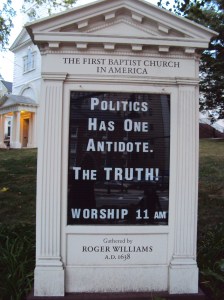 Waiting for the bus at the Tunnel I see the sign for the First Baptist Church. The church that was founded by Roger Williams before the American Revolution. Still defending freedom after all these years. It was never easy. Like the saying goes, freedom isn’t free. Finding our way when there are real enemies without, and conflict within is the challenge we face. But we have faced this before. Our better angels are speaking, if we will hear them.