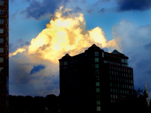 One speaker is opposing RIPTA cuts to public transit, a cause supported by Progressive Democrats of American and the Sierra Club. I took the bus to the demonstration– if I didn’t I’d still be looking for a place to park. It was a long wait in Kennedy Plaza for the number 42, but I was rewarded with a great view of the sky.