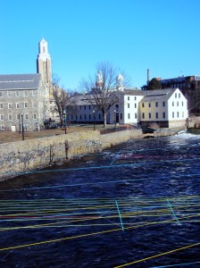DONNA KENNY KIRWANPAWTUCKET — From the Main Street bridge by day, the Blackstone River and historic Slater Mill can be viewed through a network of brightly colored cords that shimmer in the sunlight. At nighttime, the reflective filaments in the cords appear to send off a laser light show through the mist generated from the rushing water below.